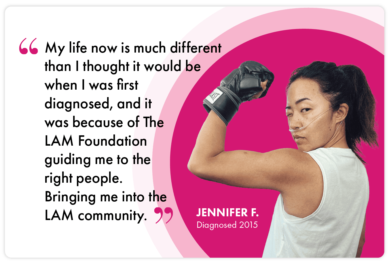 Jennifer is fierce. A force of nature inspiring women living with LAM. She crushes workouts and motivates others to keep going. Her strength is powerful, but she can’t do it alone. The LAM Foundation gave her answers, support, and the tools to fight back. Now, we need your help to keep that momentum going.